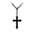 Pewter pointed cross infilled with black enamel. Suspended, rosary style from a pewter skull on a black curb chain.